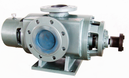 雙螺桿泵是外嚙合的螺桿泵,它利用相互嚙合,互不接觸的兩根螺桿來(lái)抽送液體。雙螺桿泵為一種雙吸式非密閉的雙螺桿泵。一端伸出泵外的主動(dòng)螺桿由原動(dòng)機(jī)驅(qū)動(dòng)。主動(dòng)螺桿與從動(dòng)螺桿具有不同旋向的螺紋。螺桿與泵體緊密貼合。從動(dòng)螺桿是通過同步齒輪由主動(dòng)螺桿帶動(dòng)的。